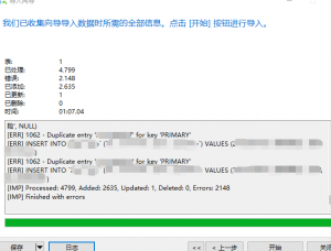 如图,直接人都傻了,我选了如果重复就更新数据,咋还被pk限制给干了