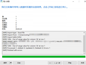 根据工具上的报错输出1264:Out of range value for column